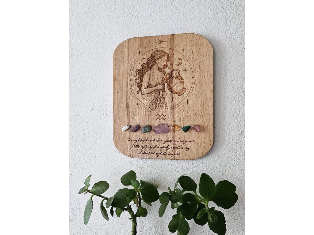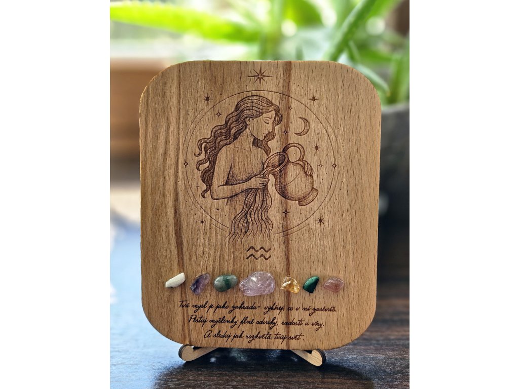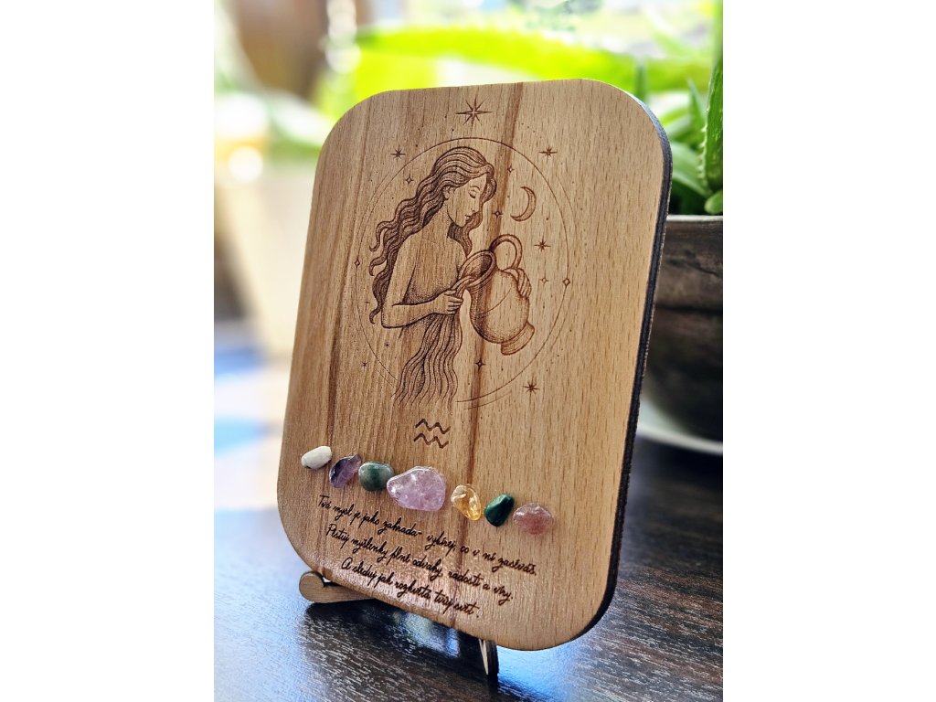 Dekorace znamení zvěrokruhu z bukového dřeva s přírodními kameny – gravírování na míru