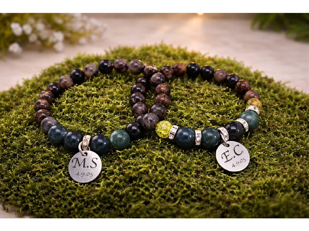 Pouto lesa – párové náramky z minerálů s gravírováním