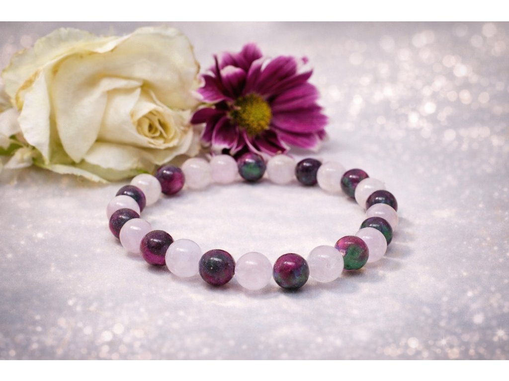 Dámský minerální náramek Něžné probuzení spojuje bílý mléčný jadeit a zeleno-růžový jadeit. Tyto minerální kameny symbolizují čistotu, klid a životní energii. Výsledkem je jemný a harmonický šperk, který podtrhne ženskou krásu a stane se osobním talismanem pro každý den.
