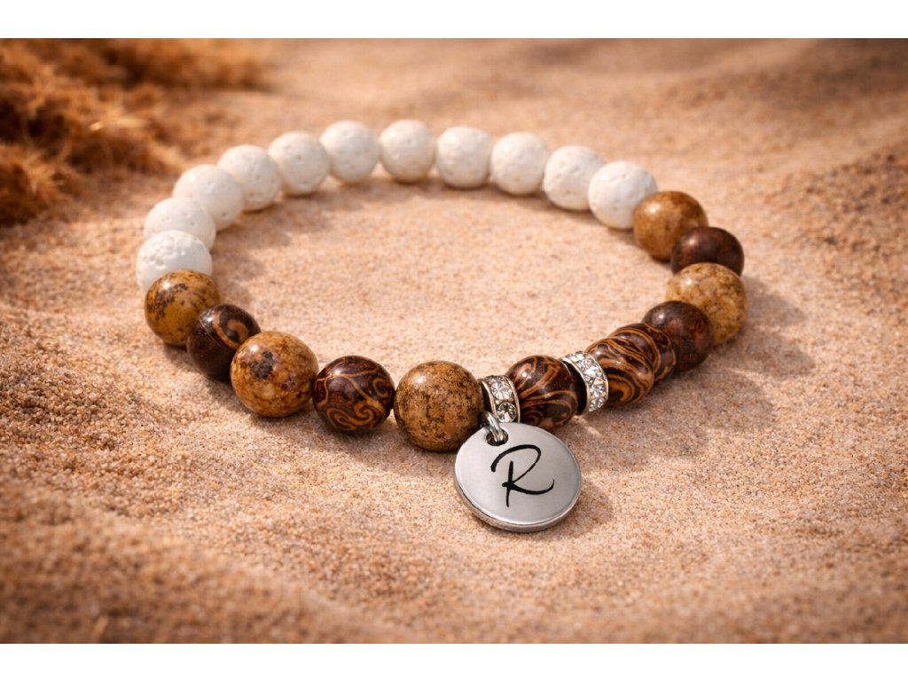Elegantní pánský minerální náramek Pouštní oheň je tvořen kombinací bílého lávového kamene 🤍, jaspisu obrázkového a jaspisu sloního. Tyto minerály spojují sílu, odvahu, vitalitu a stabilitu. Výjimečný šperk, který podtrhne mužskou energii a stane se osobním talismanem.